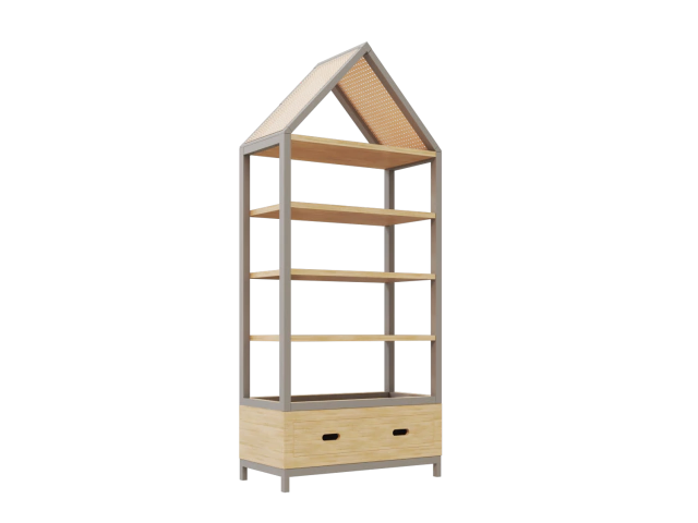 Com design original, a Estante Tupi confere um toque de leveza e praticidade à organização do quarto dos bebês e das crianças.